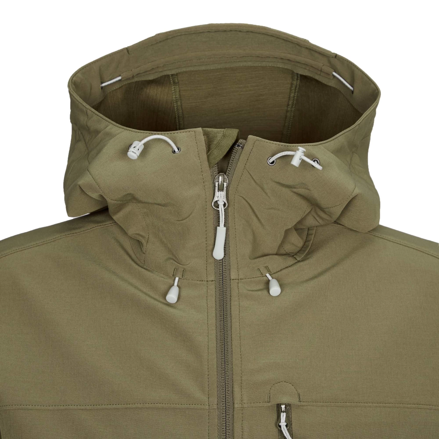 - Kapuze mit Schirm und Volumenregulierung vorne und hinten