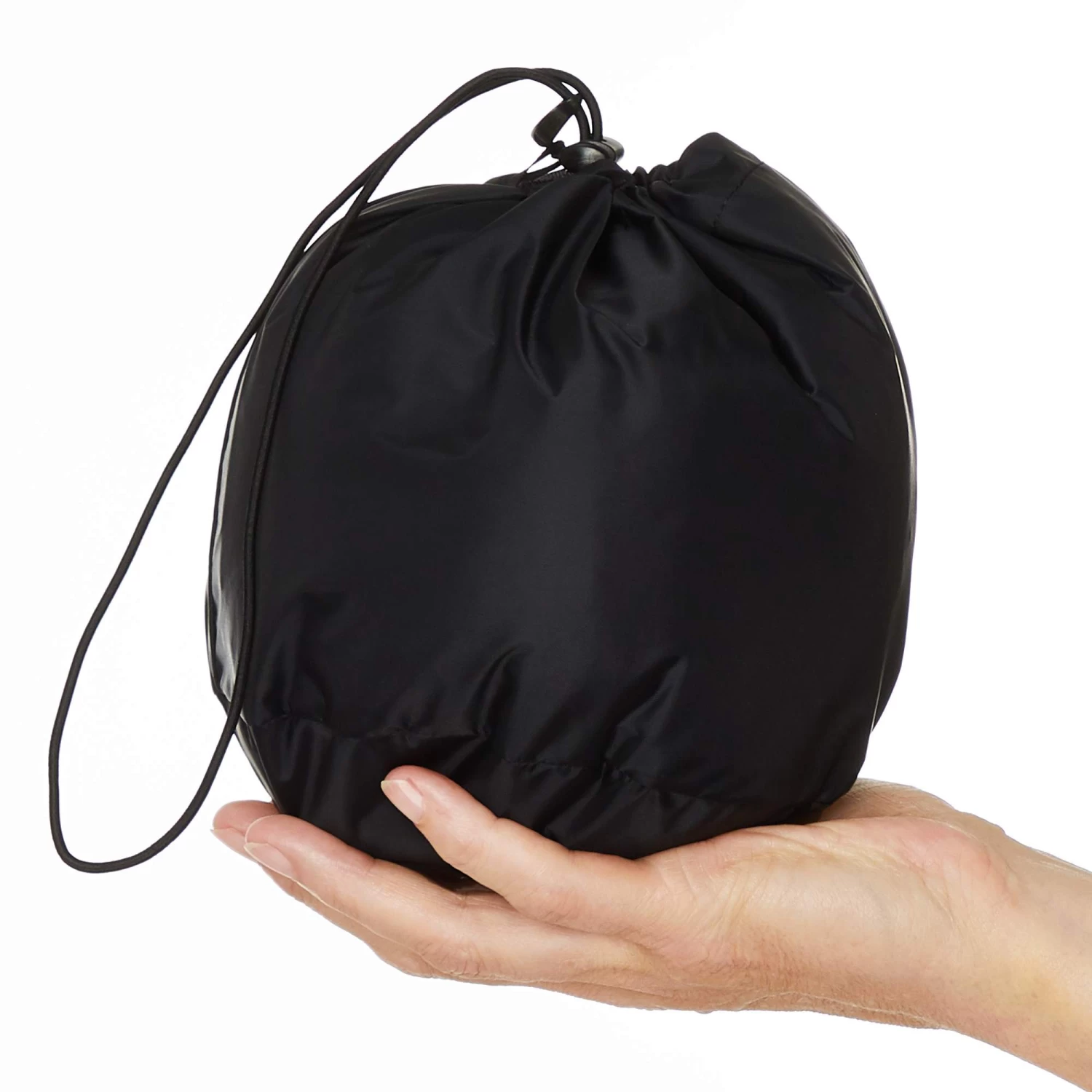 - Druckknopf am Saum zum Fixieren des Ponchos zwischen den Beinen